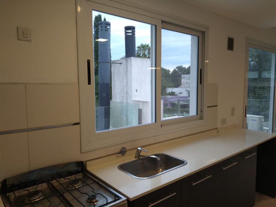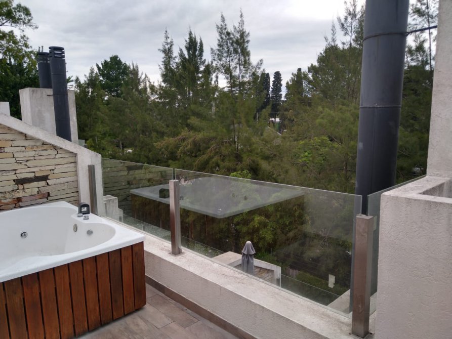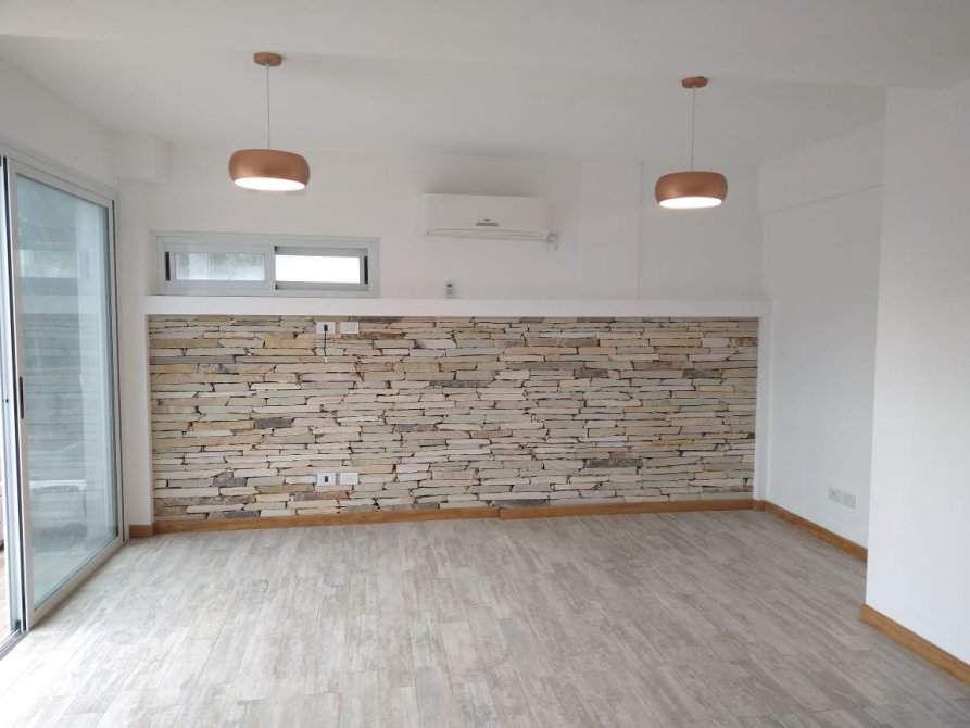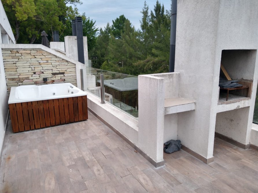 Estar con cocina integrada con alacena y bajo mesada, instalación de lava secarropas, placard. Baño completo con vanitory de mármol con bacha cristal. Amplio balcón terraza con parrilla, mesada, bacha y jacuzzi.