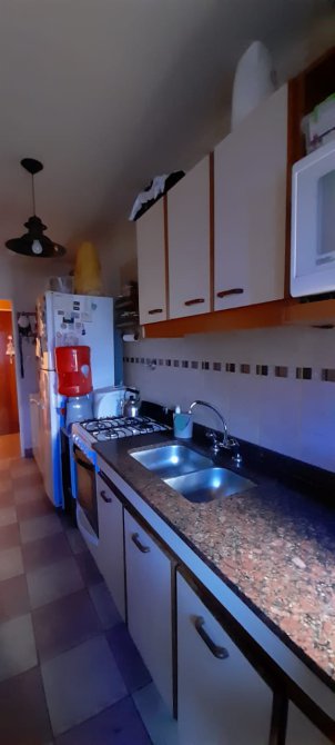 Ingreso a living comedor con pisos cerámicos, estufa, 2 ventiladores de techo y equipo de Aire Acondicionado Split frío-calor, cocina con pisos de cerámica, calefón, muebles bajo y sobre mesada, mesada de mármol, lavadero con cerramientos de aluminio, 2 dormitorios con pisos de vinilo simil piso flotantes, ventiladores de techo, placares embutidos con sus interiores, el dormtiorio principal cuenta con AA Split frío-calor, , baño completo, bañera con mampara y extractor de aire.