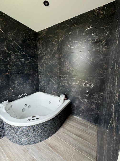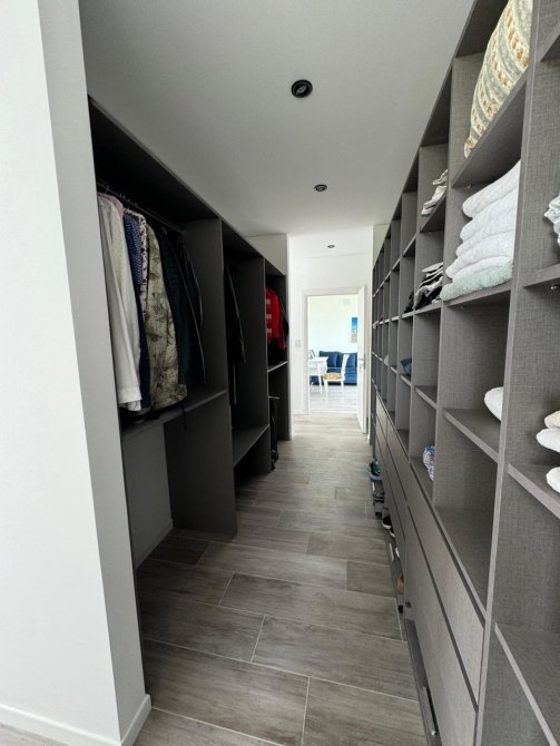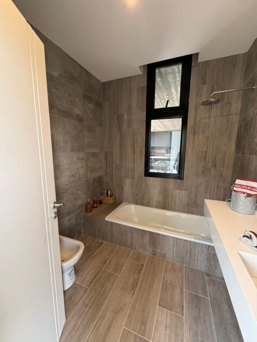 Hacia la izquierda toilette con antebaño, bacha doble, con base de neolith, y el baño con paredes revestidas en porcelanato y stuco; pasillo distribuidor con baño completo, 2 habitaciones con placares e interiores y un remate en un espacio ideal para escritorio. Acceso a la suitte, con vestidor armado y baño completo que consta de doble bacha, box independiente de inodoro, bidet y el espacio de ducha e hidro.