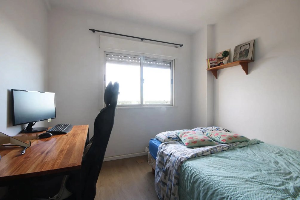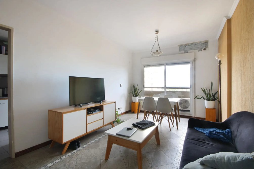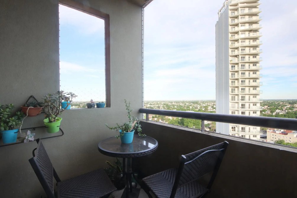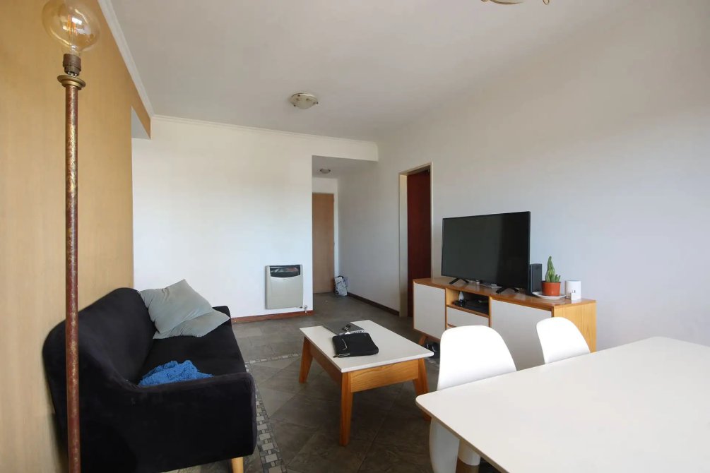 Ingreso al edificio con hall de recepción y ascensores. Acceso al departamento a través de muy luminoso living comedor con pisos cerámicos y salida hacia balcón. Calefacción y AA instalados. Cocina comedor diario con muebles bajo y sobre mesada, espacio para lavadero y salida hacia balcón corrido. 2 baños completos, uno con ducha y otro con bañera. 2 dormitorios con placares.