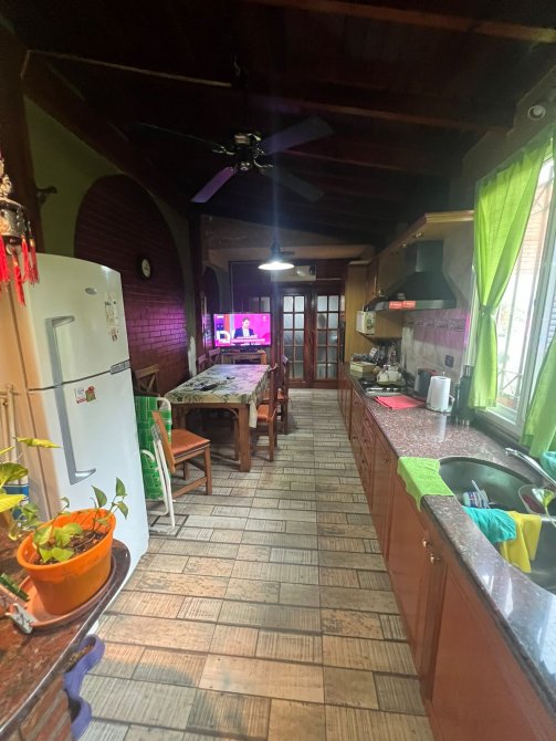 La propiedad consta de entrada para auto con doble ingreso automatizado (rejas y portón al garage cubierto) espacio de lavadero con muebles y amplio espacio de guardado bajo escalera, acceso a la cocina comedor con muebles bajo y sobre mesada de primera calidad, barra desayunador, parrilla, extractores. El ambiente cuenta con calefacción y aire acondicionado, amplios ventanales que iluminan todo el ambiente, con vista al jardín, Living comedor, un baño completo, cuarto pequeño, ideal escritorio. Al fondo patio con espacio parquizado.