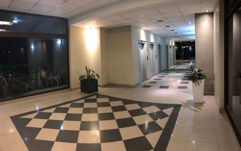Edificio con hall de recepción y ascensores.