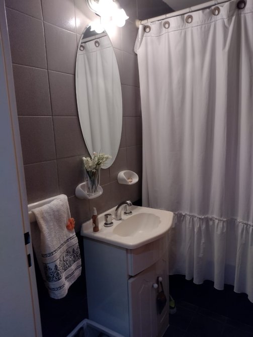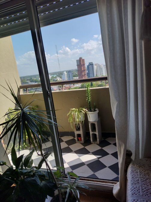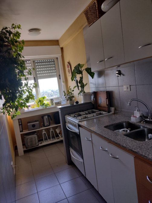 Living comedor con pisos flotantes y salida hacia el balcón con muy linda vista. Cocina con muebles bajo mesada y alacenas. Baño completo y un dormitorio con piso alfombrado y placard.