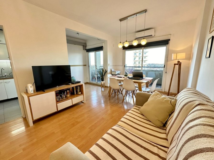 Living comedor muy cómodo y luminoso, cocina comedor diario con lavadero incorporado, un balcón corrido sobre living y cocina inclusive. La cocina con muebles bajo y sobre mesada, campana de acero. Dos dormitorios con placard, el principal en suitte con baño completo y toilette de recepción.