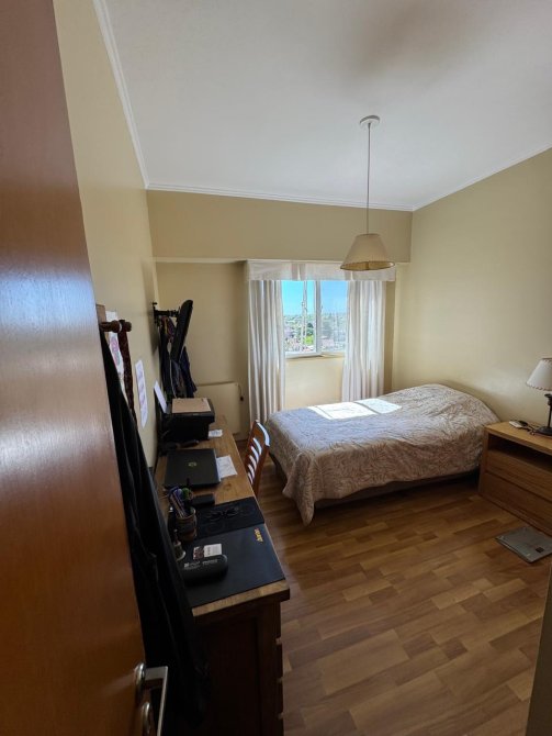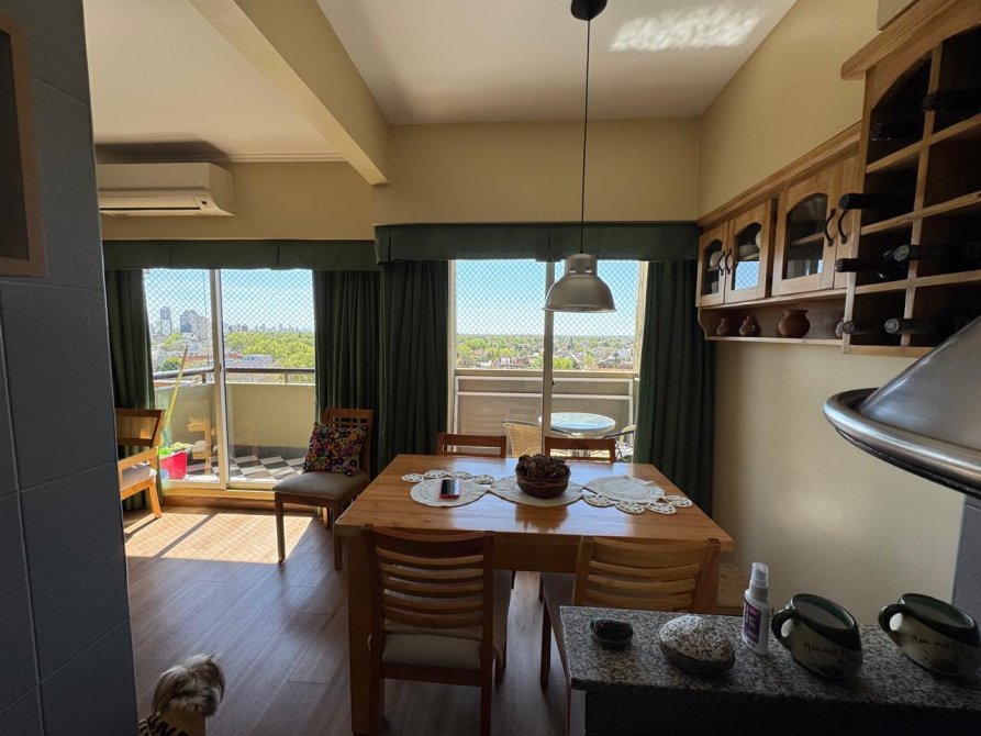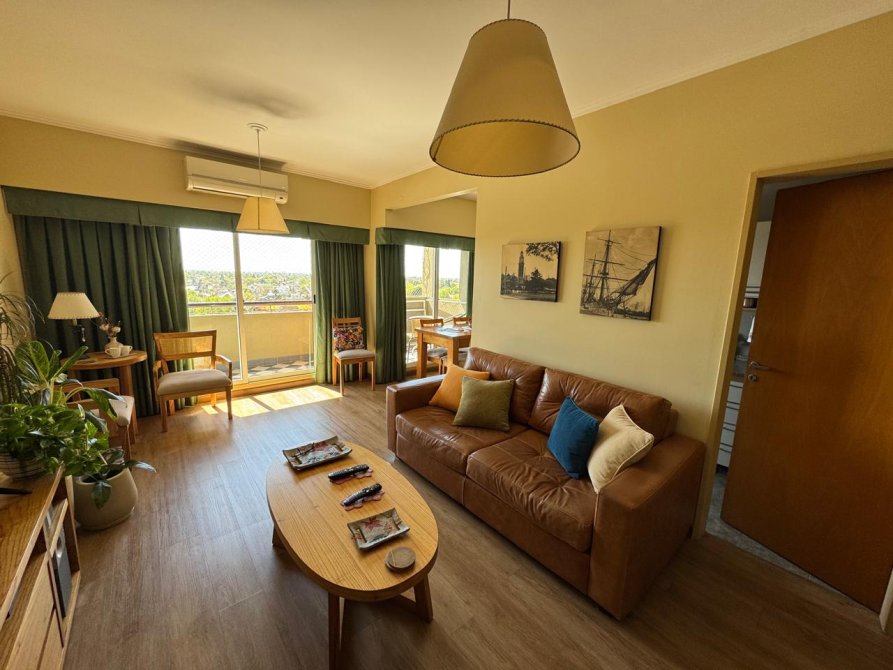 Muy luminoso y cómodo living comedor con pisos flotantes y salida hacia el balcón corrido. Cocina con muebles bajo mesada y alacenas. Baño completo, dormitorio principal en suitte y segundo dormitorio, ambos con placares.