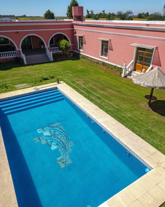 Con una construcción de 1000 mts2 cubiertos aprox. con piscina climatizada solar y revestida de 10 x 5 mts. Luz Trifasica. La propiedad consta de recibidor, amplio y muy luminoso comedor, cocina comedor amoblado, con disponibilidad de vajilla, mantelería, heladera, cocina, horno y utensillos. living con TV, 11 habitaciones en suitte, cada una con baño completo, vestidor, TV Smart, ropa de cama y toallas. quincho, sector de parrilla y horno de barro al aire libre. AIre acondicionado y calefacción cntral en TODOS sus ambientes.