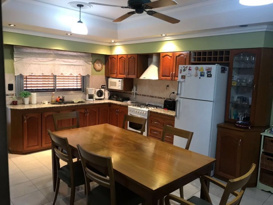 Cuenta con Jardín al frente, entrada de autos, garage, living, cocina comedor con muebles bajo y sobre mesada, baño, 4 dormitorios en planta alta, baño completo, fondo libre con parrilla, quincho y baño. Pisos de porcellanato, carpintería en roble, ventanas balcón en todos los ambiente, yesería de primera con luces empotradas en todos los ambientes.