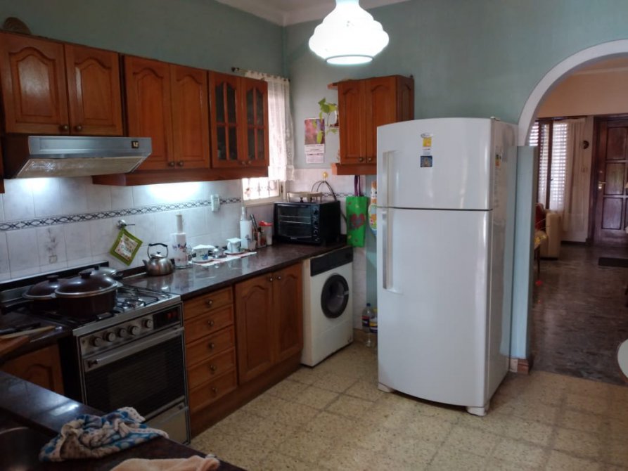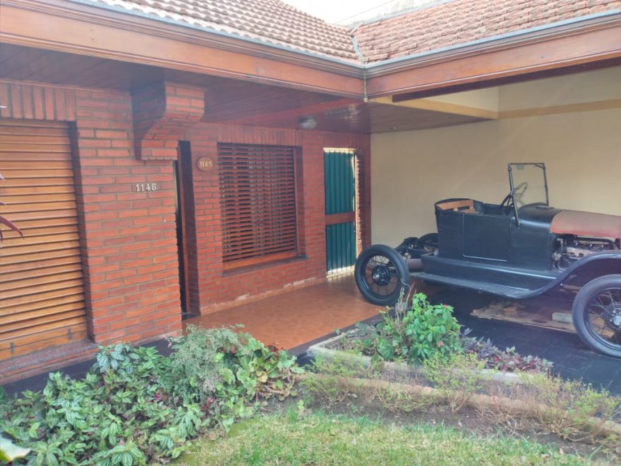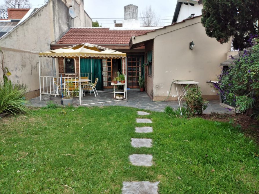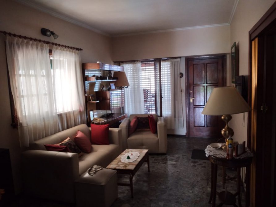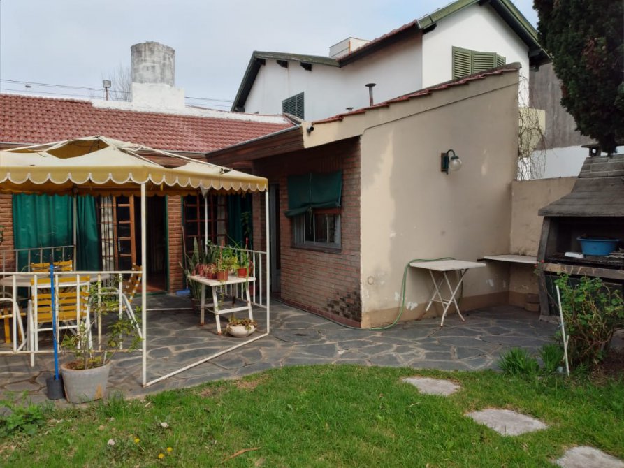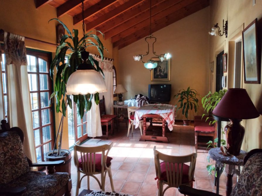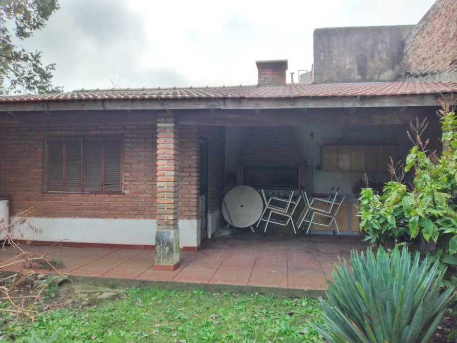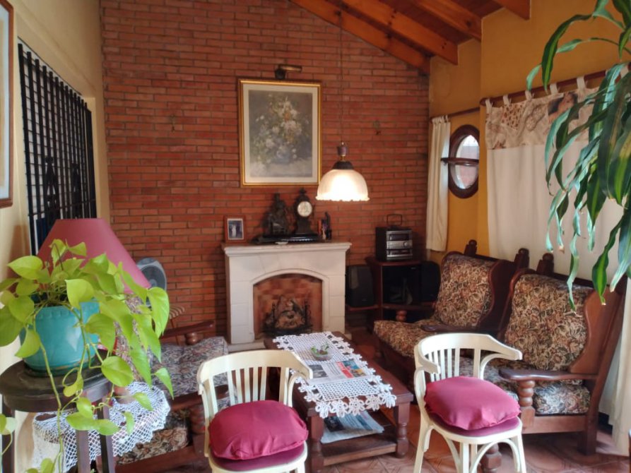 Chalet en planta baja con jardín y rejas al frente, cochera para un auto, estar con estufa de tiro balanceado, baño completo, 2 dormitorios con pisos de madera y placares, cocina con muebles bajo y sobre mesada, comedor y estar diario (ex galería cerrada) con estufa de tiro balanceado y hogar leñogas, patio con parrilla, lavadero independiente, acceso por pasillo de servicio, amplio parque, piscina, quincho semicubierto con habitación y parrilla.