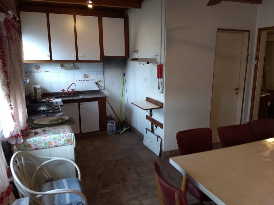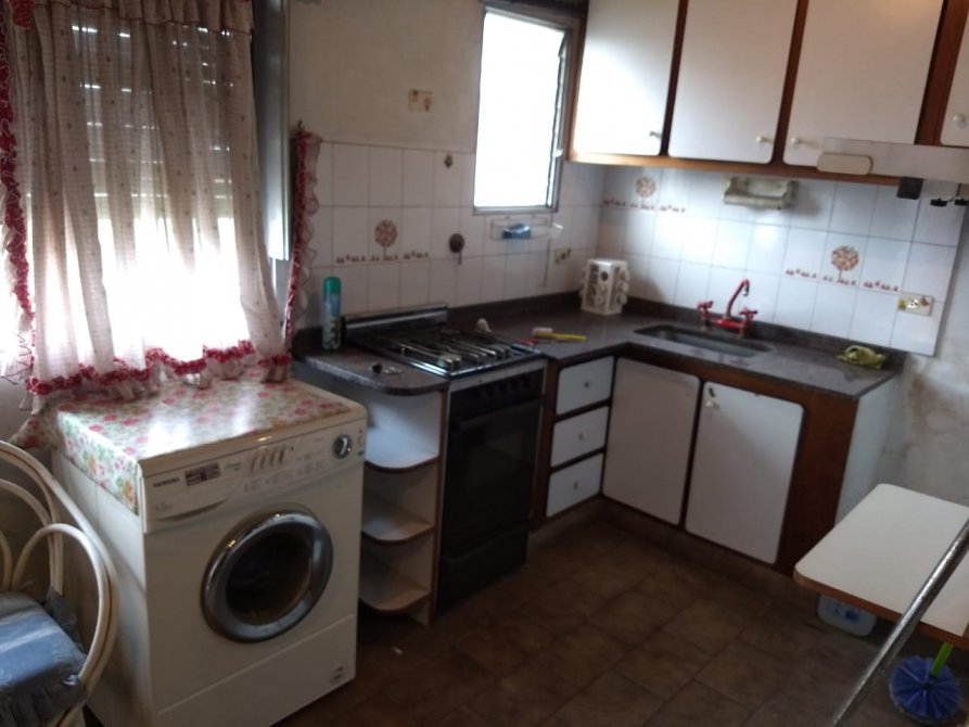 PA: Departamento de 3 ambientes con ingreso lateral independiente. Cocina comedor con muebles bajo mesada y alacenas, espacio para lavadero. Baño completo. 2 dormitorios. Balcón terraza y cuarto de enseres.