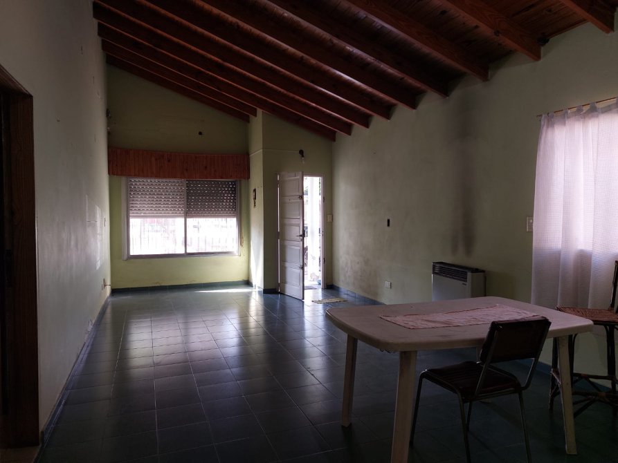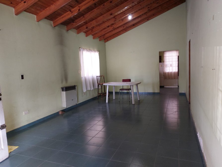 Ingreso mediante jardín al frente, entrada de autos pasante para varios vehículos. Extenso living comedor con calefacción, cocina con muebles bajo mesada y alacenas, extractor, hall de distribución, baño completo con todos sus accesorios, 2 dormitorios, uno de ellos con placard. Salida a patio con galería semicubierta, cuarto de enseres, lavadero y parrilla.