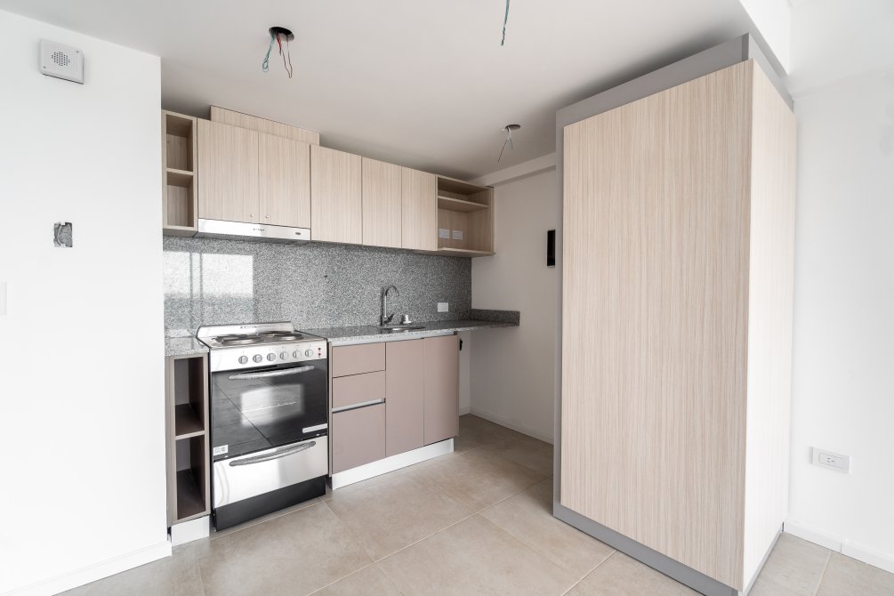 El departamento consta de living comedor con cocina semi integrada, muebles bajo y sobre mesada, extractor tipo campana y cocina eléctrica, espacio y conexiones para lavadero. Baño completo con todas sus instalaciones y accesorios. Dormitorio con placard e interiores. Balcón corrido desde el living y el dormitorio, increíble vista.