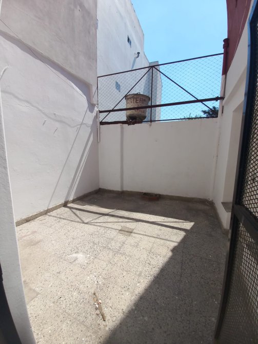 Ingreso por pasillo con baulera sobre puerta principal. Cocina comedor con muebles bajo mesada y salida a 1er patio. Living o amplio dormitorio con salida al patio, 2do dormitorio con salida hacia patio secundario. 3er dormitorio chico, ideal escritorio y baño completo. Pulmón de edificio con instalaciones para lavadero propio e independiente.