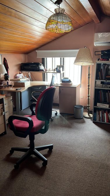 Consta de porch de ingreso. Entrada de auto, garage pasante, living comedor, cocina con muebles bajo mesada y mesada con bacha de acero inoxidable. 3 dormitorios, todos con placard y pisos de parquet, el principal en suitte y con vestidor. Estudio tipo boardilla o posible 4to dormitorio.