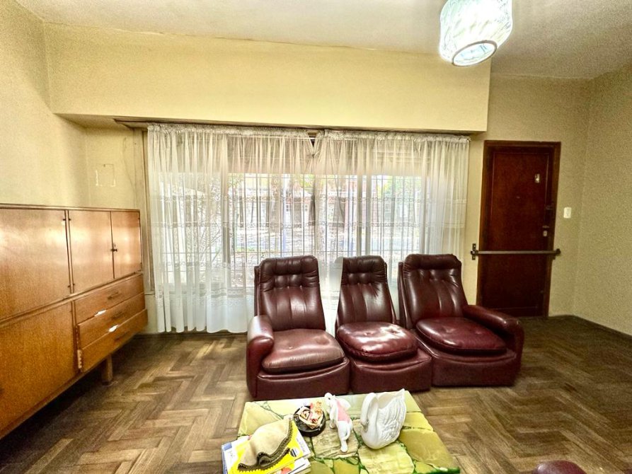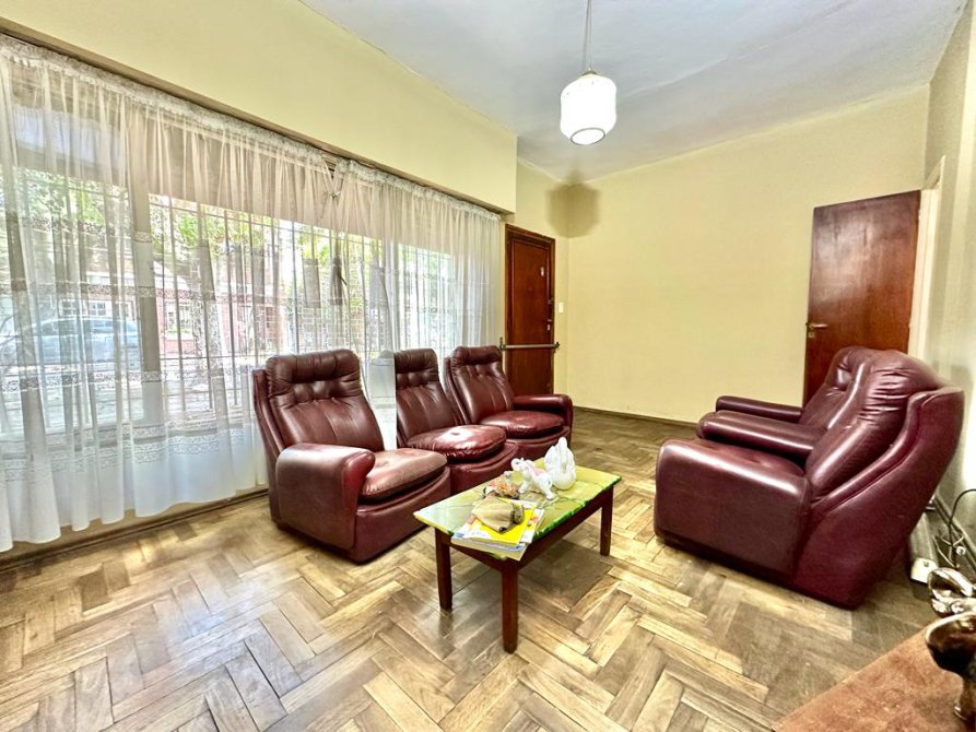 Jardín al frente con entrada para autos. Living recibidor con amplio ventanal hacia el frente, pisos de parquet. Cocina con pisos ceràmicos,