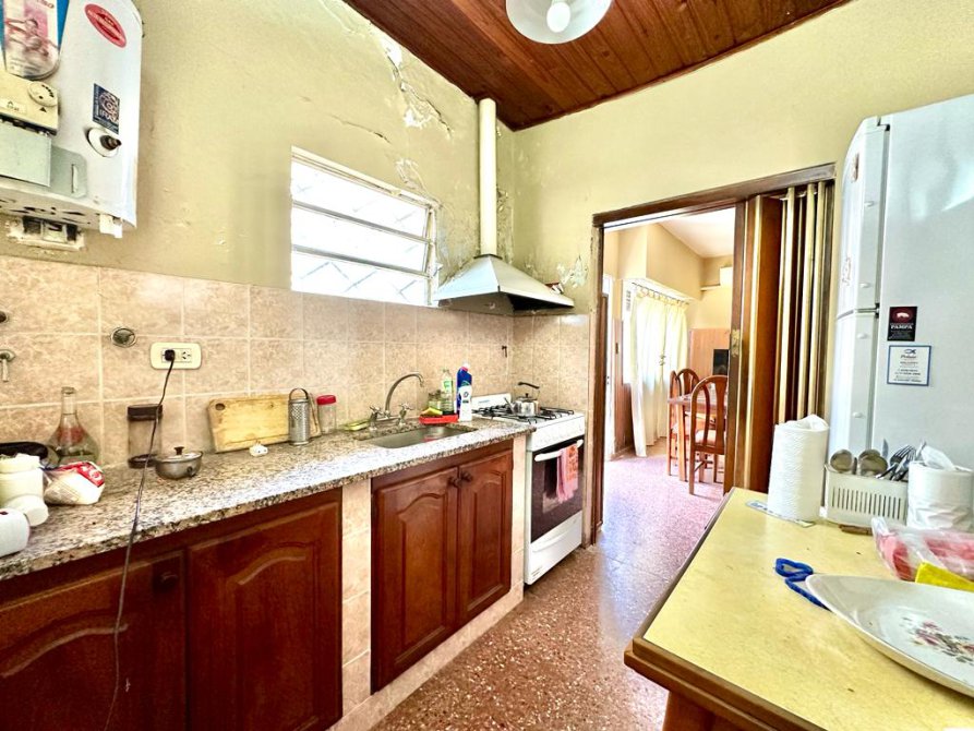 muebles bajo mesada, techo de madera a la vista, muy luminoso comedor. Hall de distribución, baño completo con todos sus accesorios. 3 dormitorios con placard, el principal con vestidor. Salida hacia patio trasero, al cual también se puede acceder desde el frente mediante