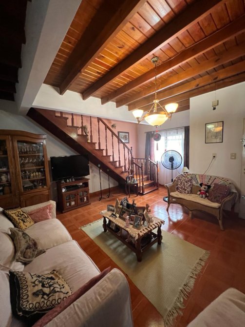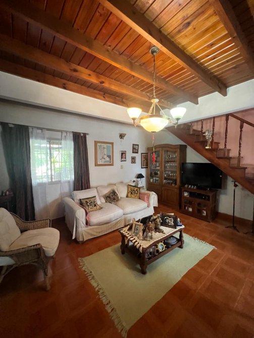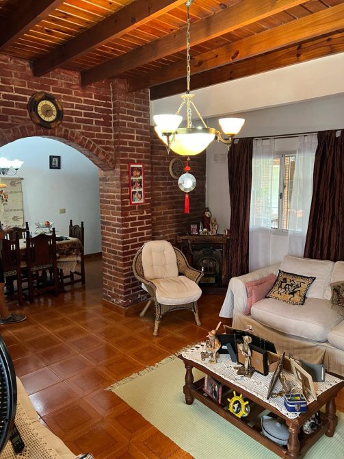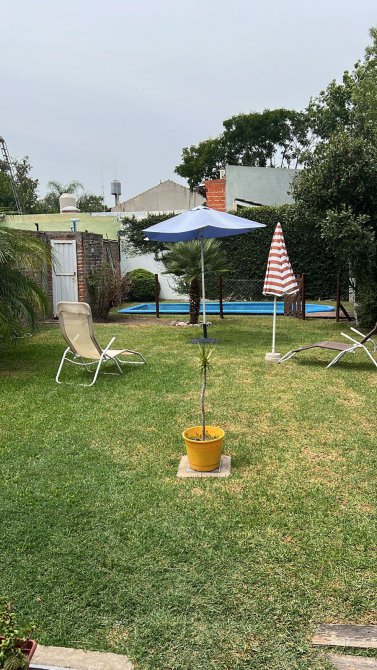PB: Jardín al frente con porche de ingreso, amplia y muy luminosa sala de estar con calefacción por hogar a gas, cocina comedor diario con muebles bajo mesada y alacenas , baño completo. Garage con acceso lateral y portón automatizado, salida hacia el fondo donde se encuentra el quincho semicubierto, con parrilla, fondo parquizado y piscina cercada.