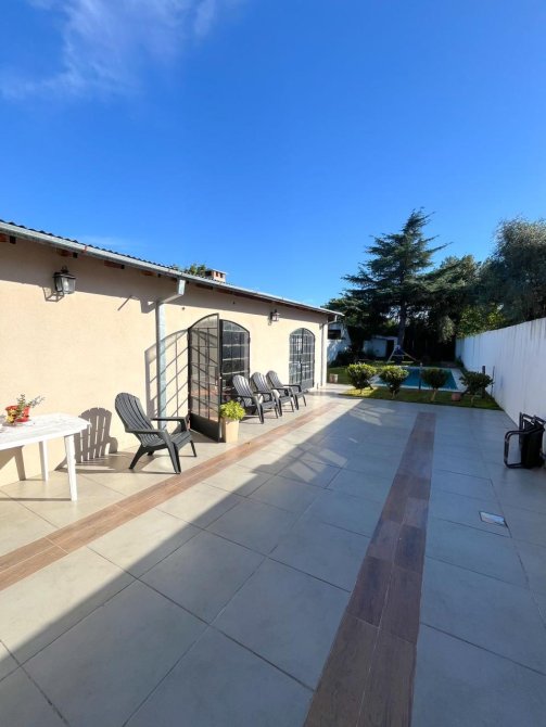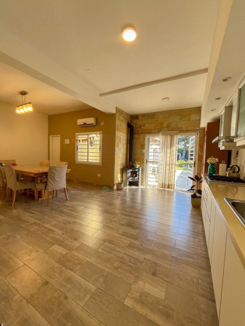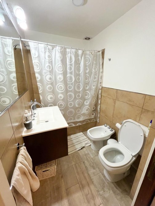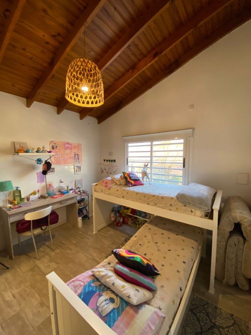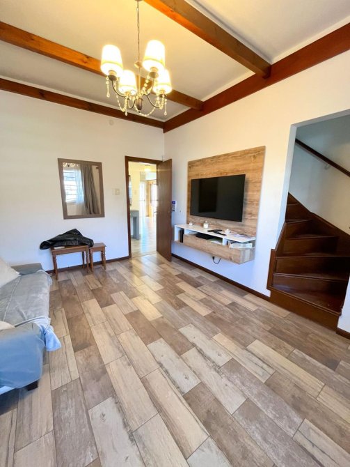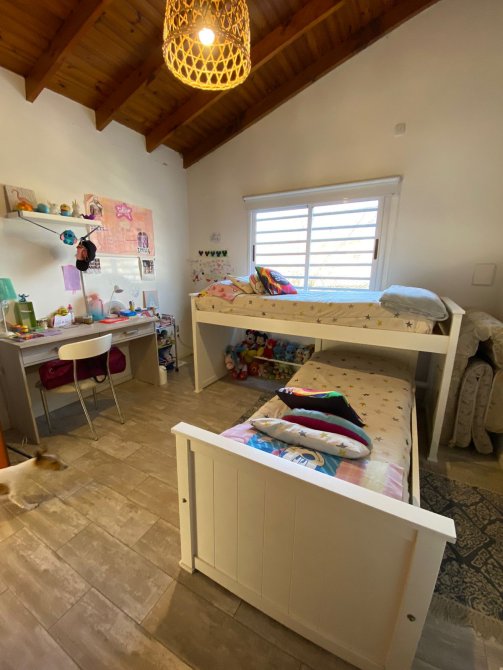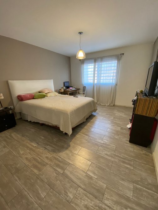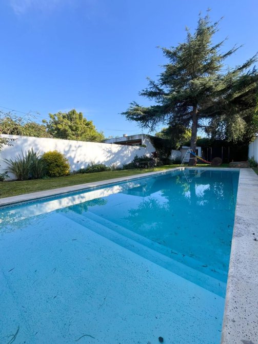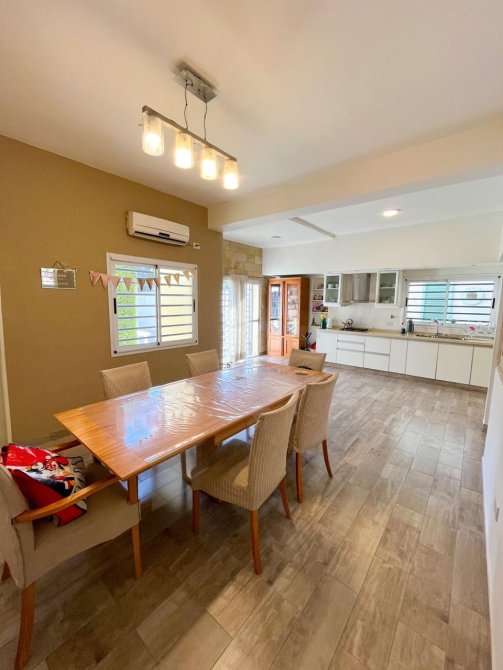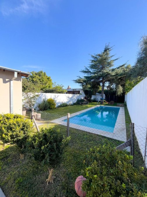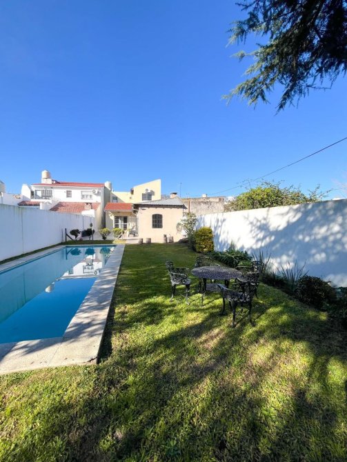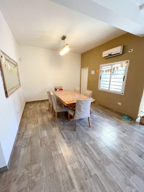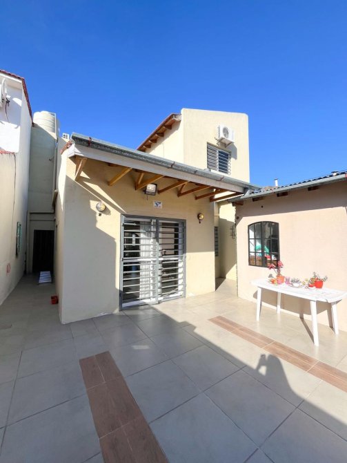 Moderna casa de 3 dormitorios en dos plantas, construida sobre un terreno de 8,66x55m con garage para un auto, recibidor, muy amplia cocina comedor diario, baño completo. Al fondo patio con extenso espacio parquizado, quincho con parrilla y piscina.