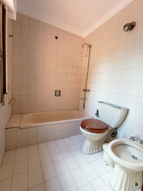 Planta Baja: Un largo pasillo distribuidor conecta de manera eficiente los diferentes ambientes de la casa. El living en desnivel, con piso de parquet y ventanas con rejas, destaca por su luminosidad y ventilación. El comedor independiente, con vistas al jardín, ofrece un ambiente cómodo y acogedor. La cocina, equipada con muebles de algarrobo, proporciona una amplia capacidad de guardado y funcionalidad. Además, en esta planta encontramos un baño completo y una habitación adaptable como oficina o habitación de huéspedes.
