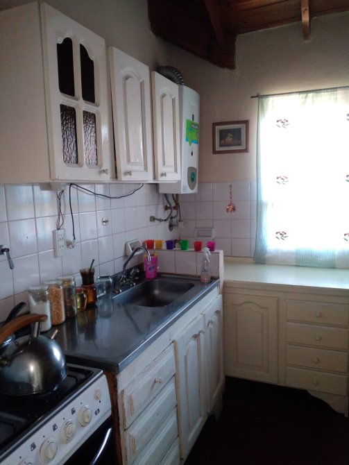 Living comedor con pisos cerámicos, estufa de tiro balanceado y salida hacia balcón, entrepiso ideal para escritorio o 4to dormitorio, cocina con muebles bajo y sobre mesada, pasillo distribuidor, baño completo y 3 domitorios.