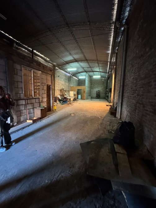 Entrada para camiones/vehículos. Al fondo posibilidad de 2da oficina, y toilette a terminar.