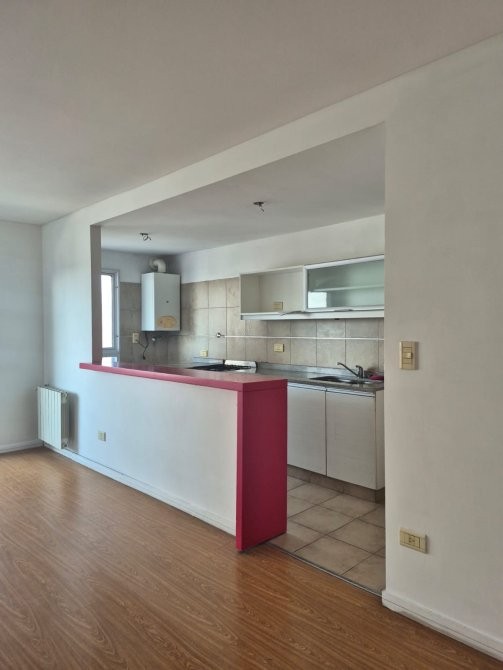 Living comedor con pisos flotantes, balcón con vista al frente. Cocina separada a través de barra desayunador, con muebles bajo y sobre mesada. Conexiones para lavadero incorporadas. Un dormitorio con placard también con piso flotante. Baño completo.